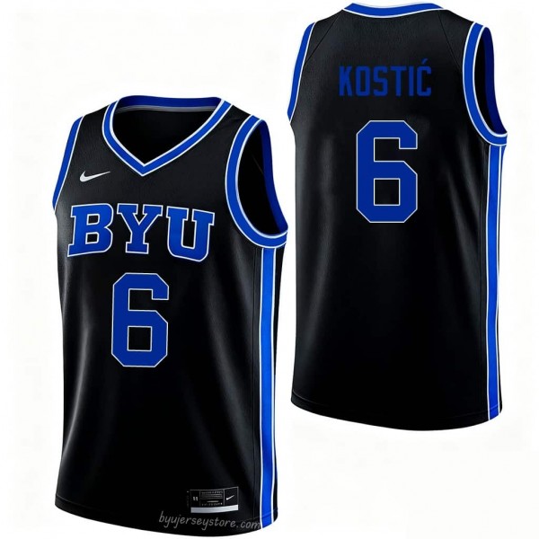 Aleksej Kostic #6 BYU Player Men Black Basketball Stitched Authentic Jersey 52769801