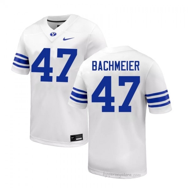 Embrace Cougar Gridiron Pride: BYU Cougars Men Bear Bachmeier #47 White Football College Premium Embroidered Jersey 70416670